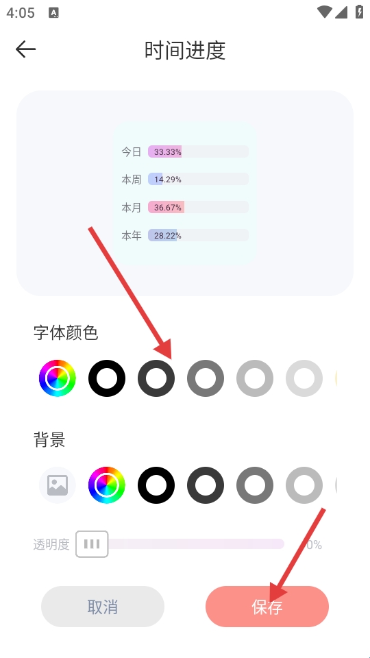 4、在编辑页面,可设置字体颜色、背景等,完成后点击【保存】,即可添加小组件。