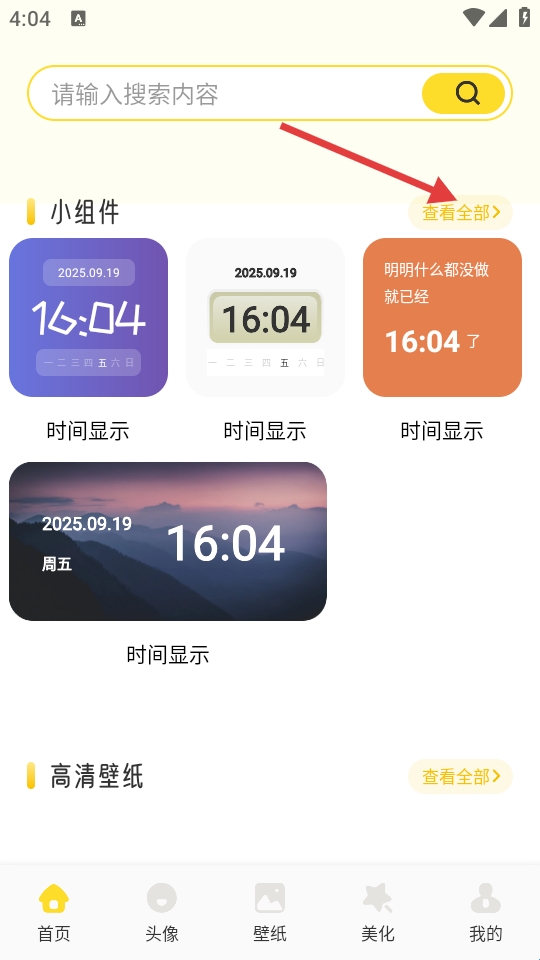1、在首页,点击小组件区域的【查看全部】,可浏览各类小组件。