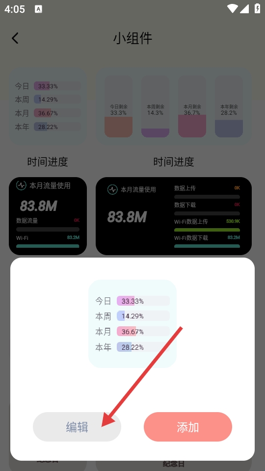 3、选中目标小组件后,在弹出窗口中点击【编辑】,可对其进行设置。