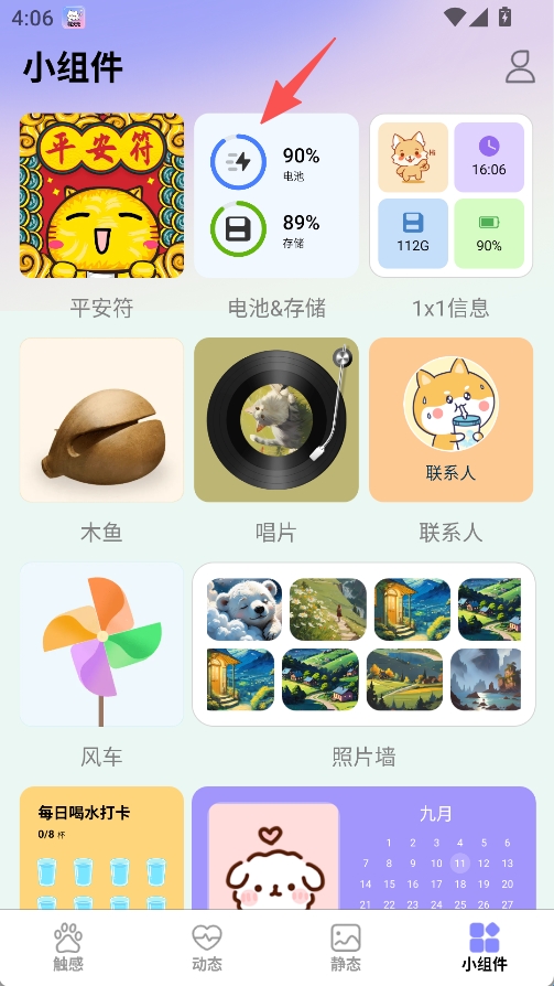 3、在预览页面或主界面找到小组件入口,点击进入小组件选择页面。