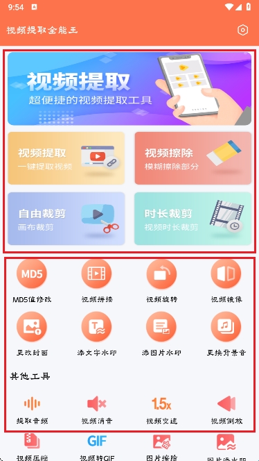 视频提取全能王app是一款转为自媒体工作者打造的视频编辑处理工具,有这一款就够了,同类软件的特色的功能基本也全都整合了,像视频提取、视频擦除、视频裁剪、MD5值修改、视频拼接、视频旋转等功能都有,而且还免费,你的一切编辑需求都是能满足的!