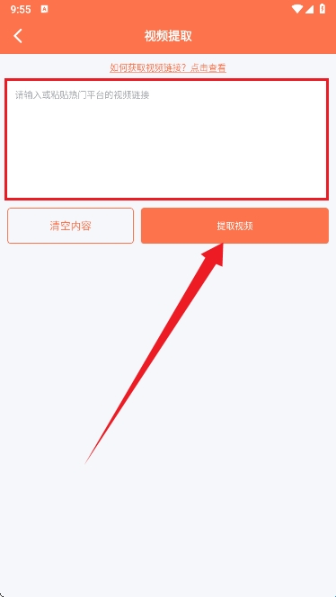 3、选择一项功能点击进入,如视频提取。如图所示。请输入或粘贴热门平台的视频链接,如何获取视频链接?