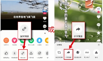 第2步.部分APP,需要点击"复制链接"按钮(如下图左),即可复制到链接。部分APP,需要点击"分享链接"按钮(如下图右),即可复制到链接。