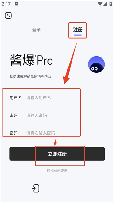 2、点击【注册】,输入用户名以及密码后点击“立即注册”