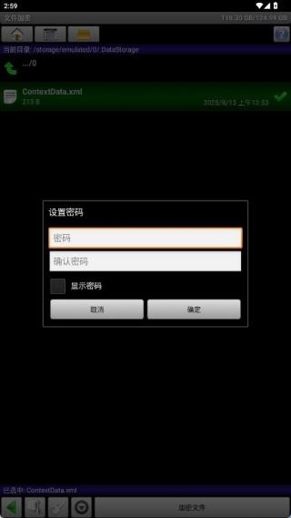 4、点击开始加密按钮,输入设定的密码即可完成加密并生成安全文件。