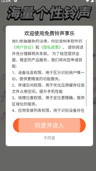 1、使用之前需要阅读用户协议和隐私政策,点击下方的同意并进入。