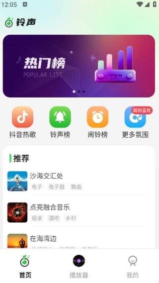 2、首页中提供各种热门的铃声榜单,直接点击即可畅听。