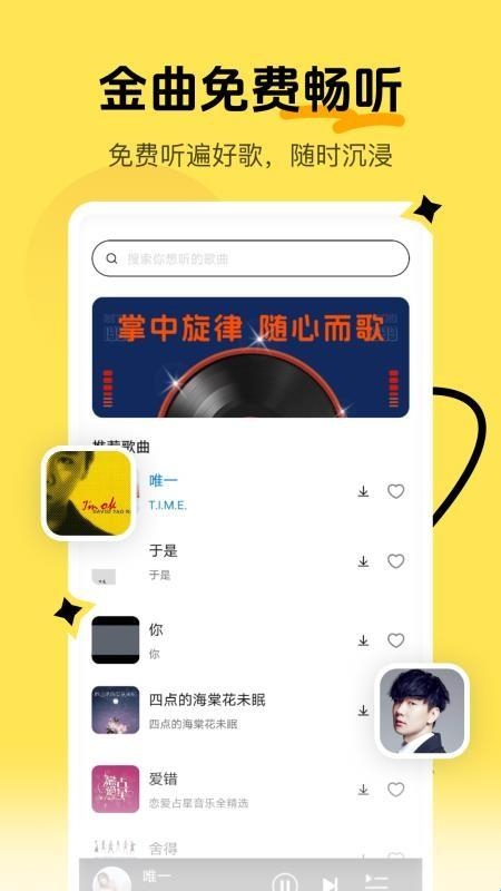4、免费听歌:其中的各种歌曲资源都可以免费收听,让用户在线听歌更加的轻松无压力。