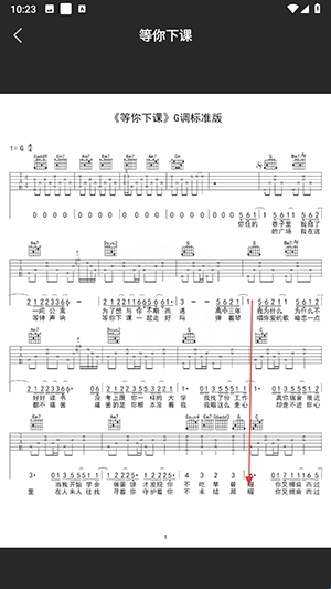 3、进入乐谱详情页后,查看G调标准版的吉他谱内容,然后【滑动页面】。