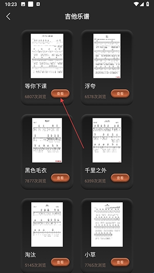1、点击右侧【查看】按钮,进入吉他乐谱列表页面。