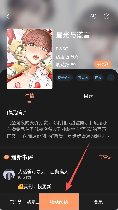 5、然后在漫画详情页面的下方点击“开始阅读”按钮。