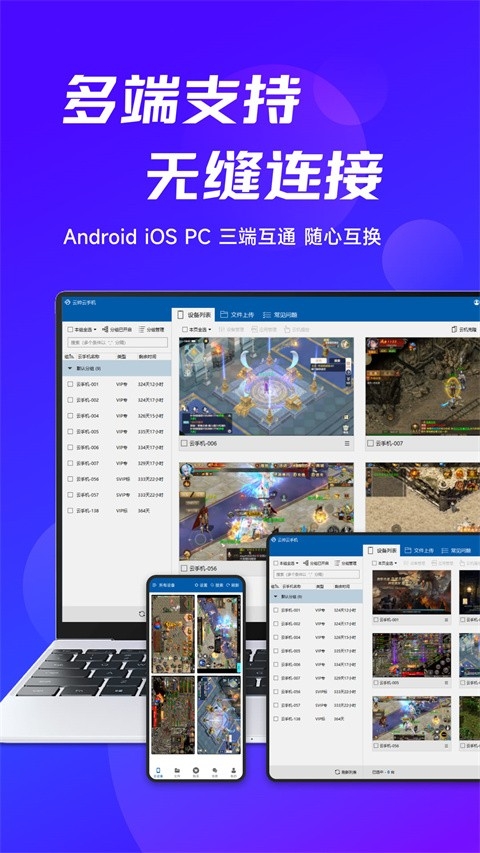 兼容主流游戏及应用;云帅云手机多开群控挂机更省心;云帅云手机app适配各平台辅助,开局号、资源号、新区号流畅多开。