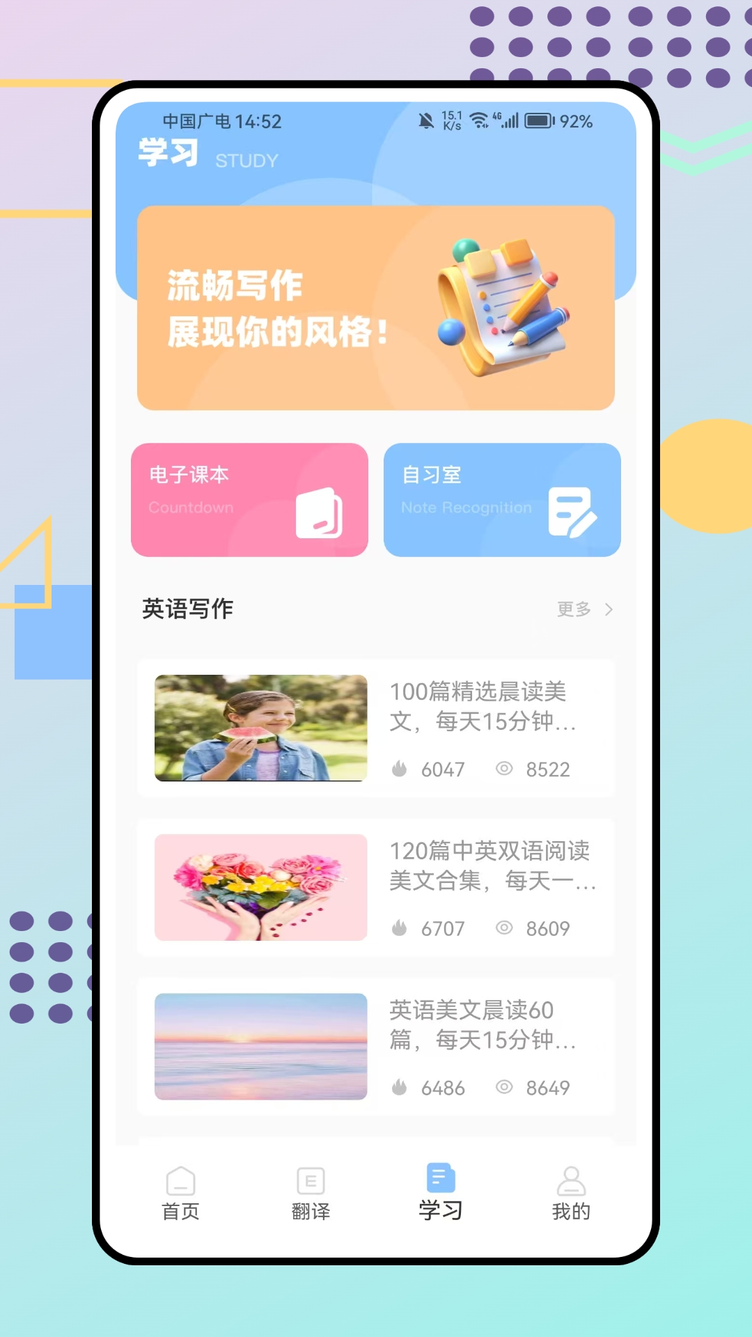 3、英语学习内容全面,所有的阅读资源及时更新,手机方便开启。