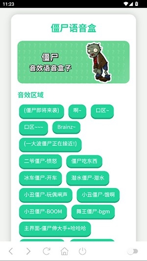 僵尸语音盒是一款十分有趣的语音盒子软件,该软件里面具有多种搞笑的语音软件全部以植物大战僵尸中的僵尸为原声,还有大量的游戏音效,十分适合恶搞好朋友惊悚又滑稽是我们平时制造开心的得力小工具,大家还在等什么呢,一起来下载吧!