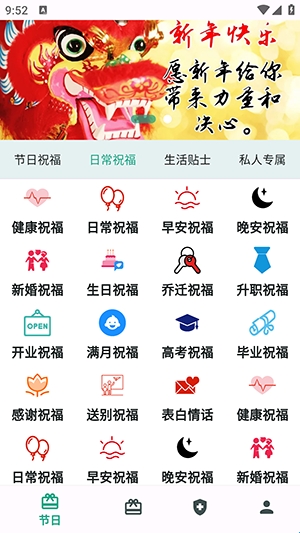 1、一款可以为大家免费提供超多祝福语文案素材的软件。