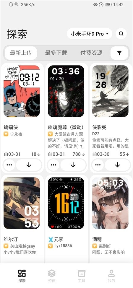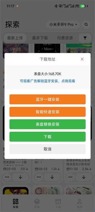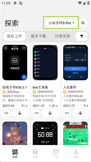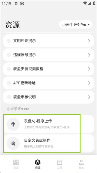 在资源页中,点击“表盘/小程序上传”按钮,即可上传你自己制作或下载的表盘和小程序,方便与他人共享。