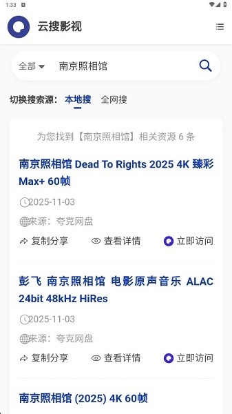 云搜影视app是一款能轻松搜全平台影视资源的软件,丰富的影音资源包括电影电视、综艺短剧、动漫番剧等以云盘资源方式展示给大家,点击进入对应的网盘工具就能快速保存到自己的云盘,随时可以在线观看或下载到本地,体验一口气看全集的乐趣。