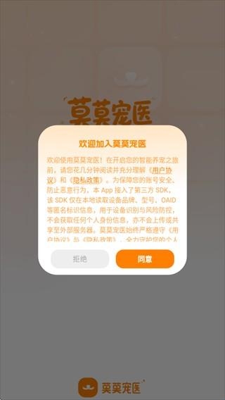 1、打开app,阅读用户协议和隐私政策之后点击同意;
