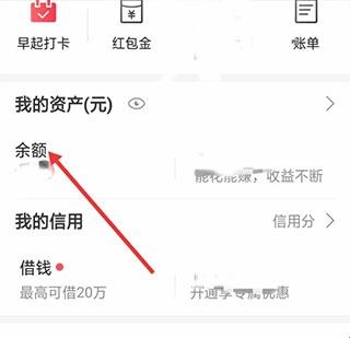 3、登录完成后,在我的页面里,点击箭头所指的余额。