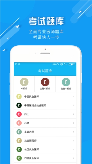 3、各类中医执业考试,包括中医师、中医师等12大类考试题库。