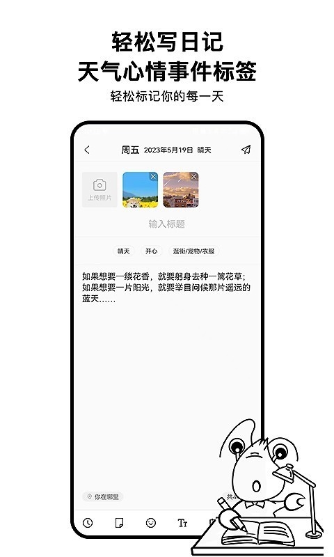 2、照片每篇日记可添加20张照片,不再单纯的文字