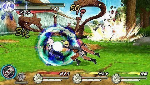 奥义:外道魔像。L1/R1为快速的3连发直线型火遁忍术。