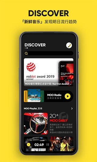 moo音乐是一款功能十分全面的音乐播放软件,在该软件里面具有海量的音乐资源而且都是可以进行免费下载或者进行收听的哦,在MOO音乐app中你可趋势掌握明日音乐流行趋势,观看动态频谱,以及听喜欢的音乐等。可以体验到十分享受的音乐体验,音质也十分清晰,还有更多的音乐榜单可以查看哦,大家还在等什么呢,一起来下载吧!