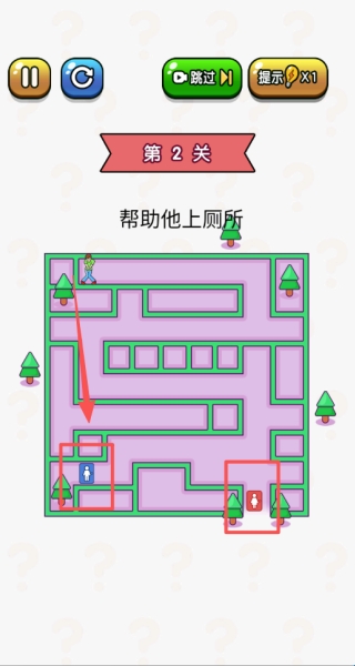 2、以画线上厕所为例,进入第一关,合理画线完成帮助角色上厕所的任务。