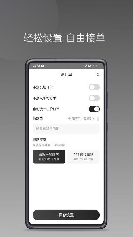 6、接单设置:还可以对相关的接单模式一键设置,让你轻松设置筛选单,有效保存自己的设置。