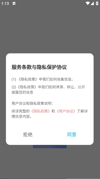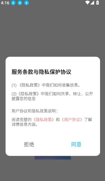 1、首先打开应用点击“同意”按钮来进入app中。