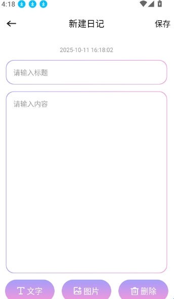 3、之后输入自己的生活点滴和标题内容,点击右上角的“保存”按钮进行保存。