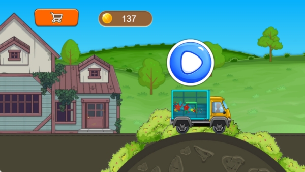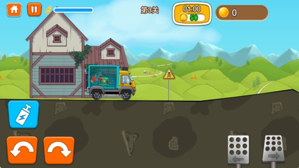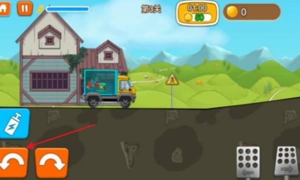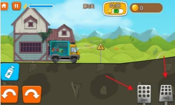 1、进入关卡之后,点击右侧的按钮,控制车辆前进或者刹车。