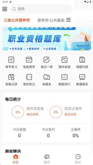 2、刷题页面展示了章节练习、智能模考、每日一练等板块,都是免费开启。