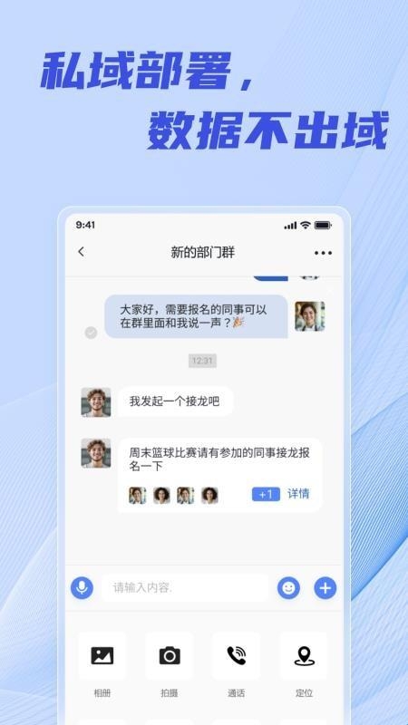 4、安全聊天:安全可靠的聊天系统,全方位保护用户的信息安全,不会泄露企业商业机密;