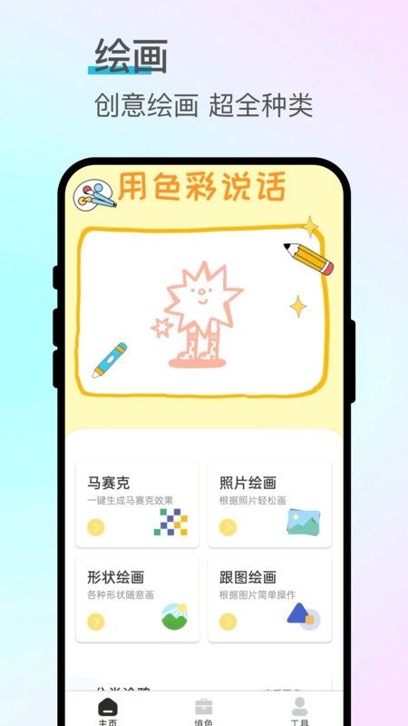 1、提供马赛克、照片绘画等多样绘画功能,方便你随心创作;