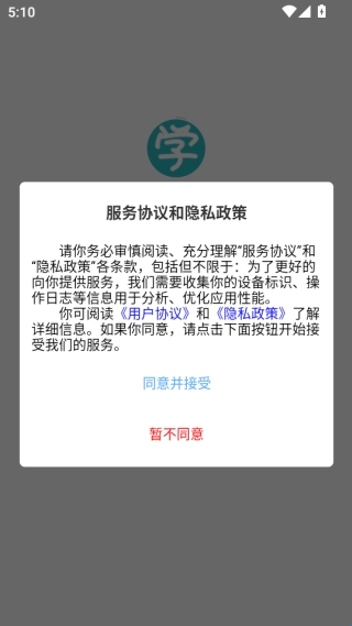 2、点击同意服务协议和隐私政策。