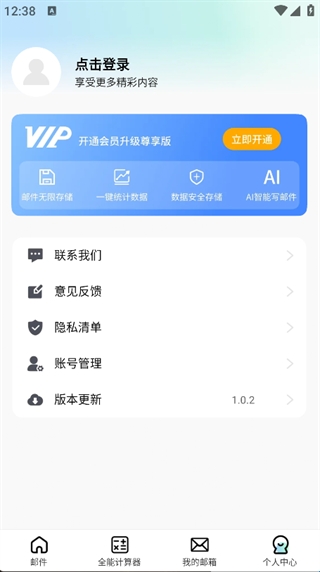 4、点击页面下方的‘个人中心’,即可登录账号,同步邮箱数据,和使用更多实用功能。