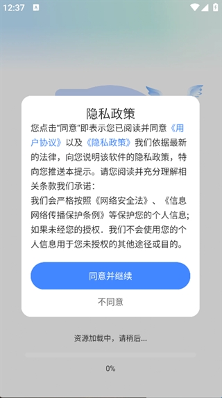 1、下载并安装APP,点击‘同意并继续’,即可进入主页面;