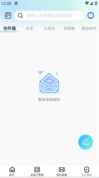 2、在首页即可看到收件箱、未读、已发送等清晰的邮件分类;