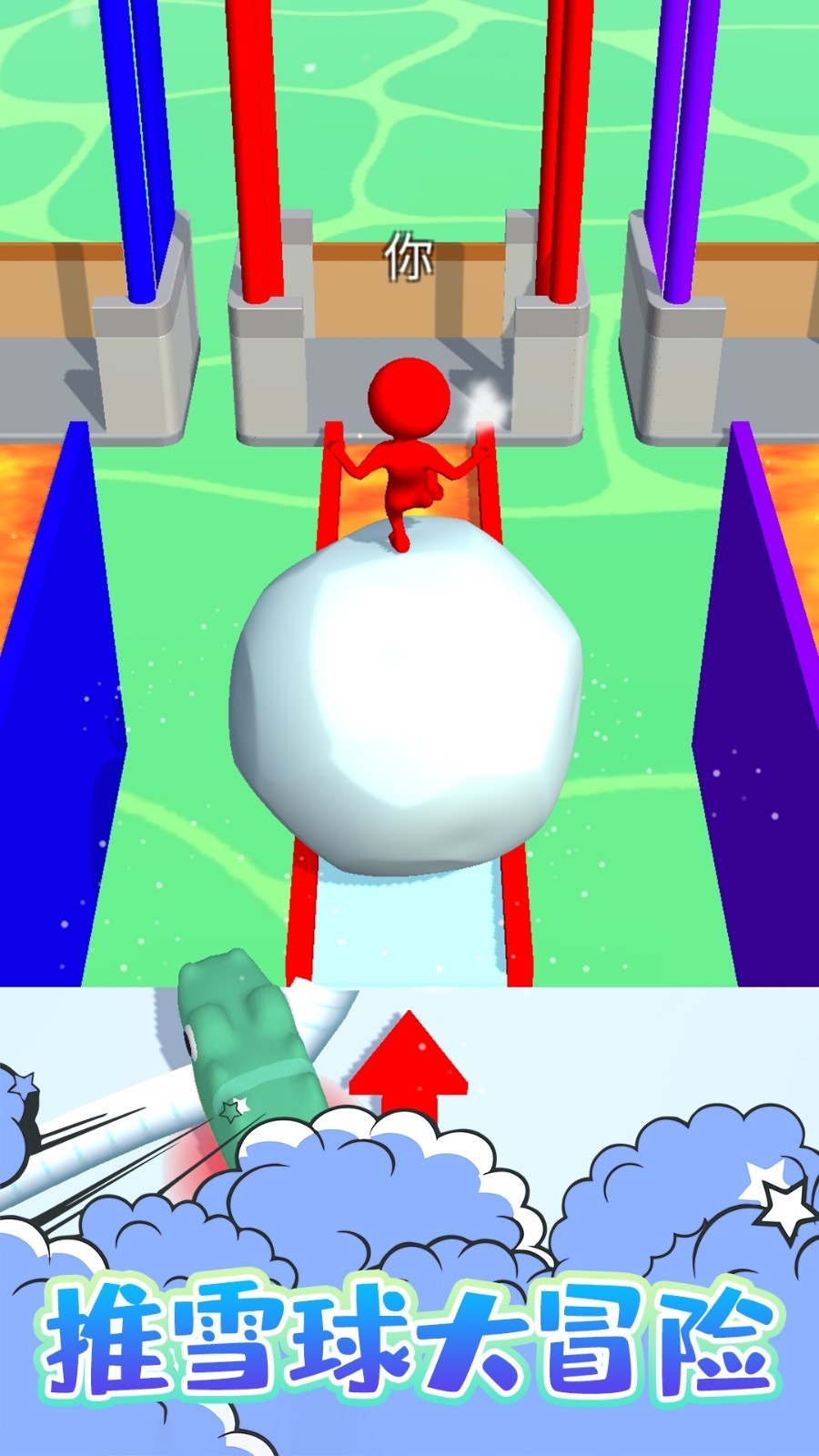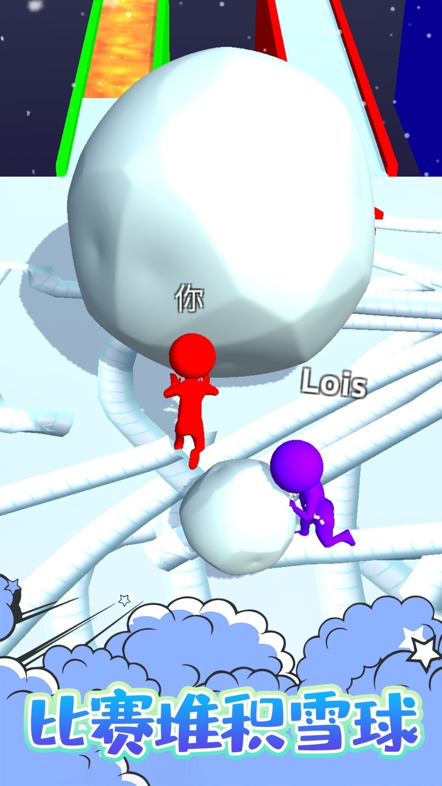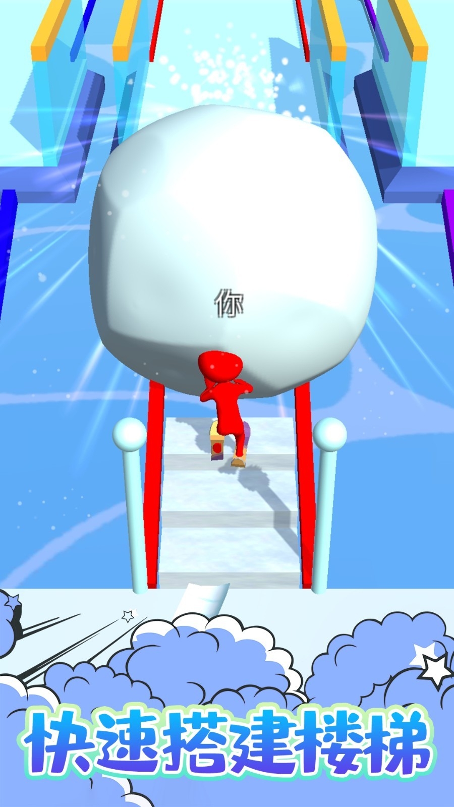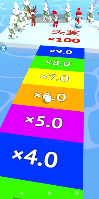 3.收集更多的雪球填满道路朝着终点冲刺!