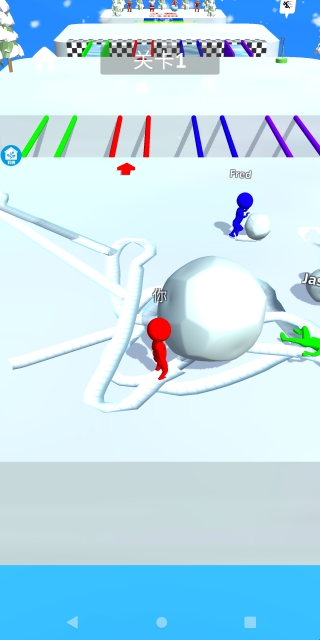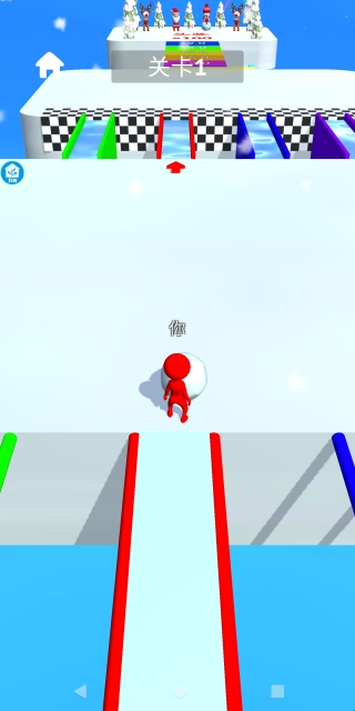 1.进入关卡后,玩家需要使用手指在屏幕上滑动来控制角色行动,并积累雪球。