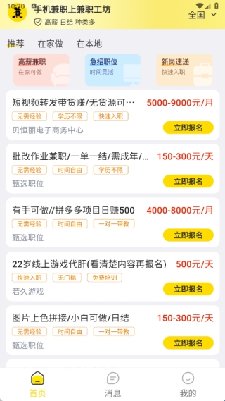 兼职工坊是一款功能十分全面的找工作的兼职软件,软件当中具有海量的兼职岗位大家可以放心直接投递,每一个公司就会有信息,而且工资就是实际的工资哦,非常适合学生以及宝妈可以赚取零花钱等等,大家还在等什么呢,一起来下载吧!