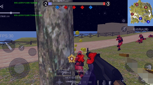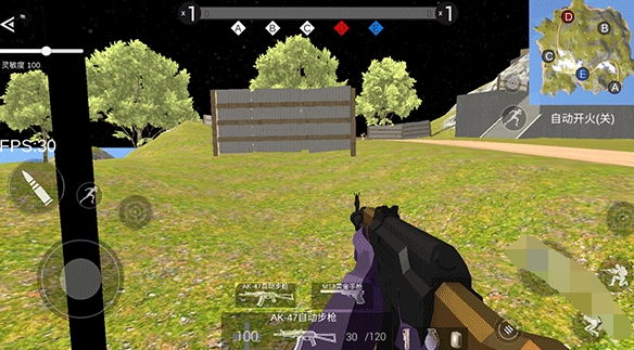 4、游戏开始后利用左边摇杆操控角色的移动,右边为射击、跳跃、蹲下等操作