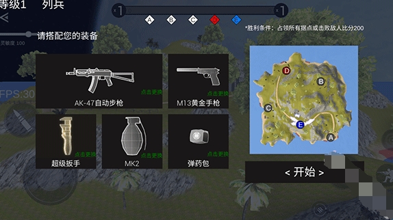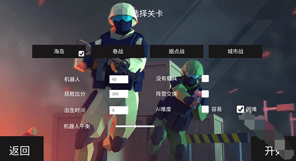 2、接着选择关卡地图、设置获胜比分、出生时间、难度等后点击开始