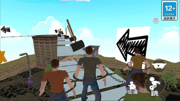 2、当角色从高处掉落时,链条会拉住同伴减缓下落速度,避免直接摔落失败,增强闯关容错率。