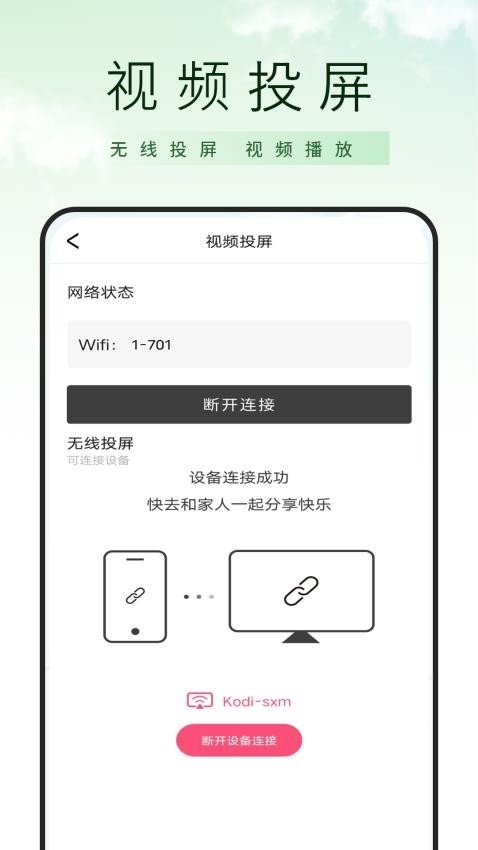4、视频投屏:通过在线连接附近的投屏设备,帮助用户将选好的视频投屏到设备上;