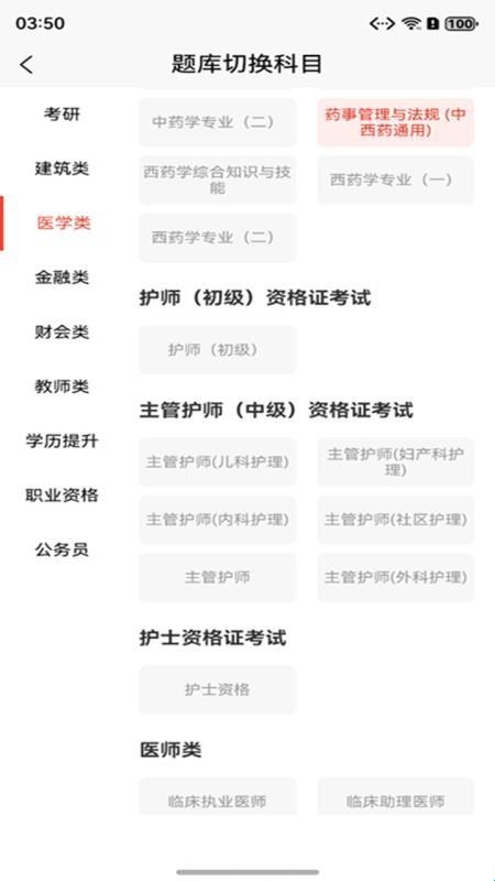 4、切换科目:可对题库的科目类型进行一键切换,可通过切换科目获取适合你的题库资源刷题学习。