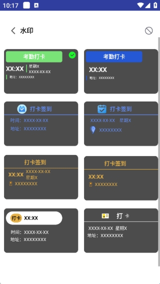 3、多样模板:为用户准备了多种水印拍照模板,可直接选择,不用编辑就能完成水印拍摄;