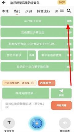 3、如选择【录音变声】,之后点击想要克隆的语音包,