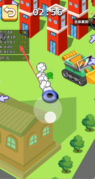 3、进入地图后,吞噬一切可以吞噬的物体,查看左上角的当前排名。